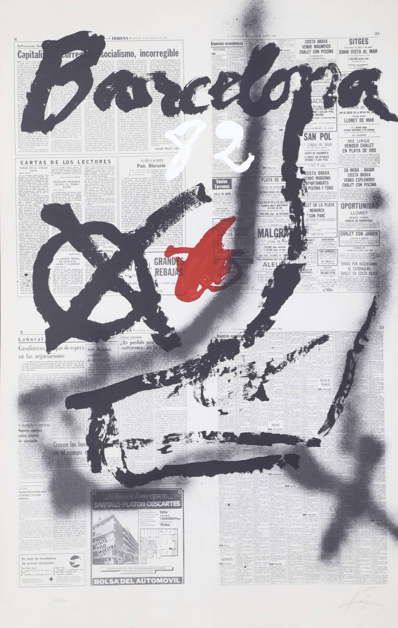 Dans les années 1960, Tàpies intègre de nouveaux éléments à ses compositions comme des morceaux d’écriture ou des signes primitifs tels que des traces de main et de pieds. En parallèle, Tàpies développe une activité d’écriture et se fait historien de l’art en publiant Valeur de l’art en 1993. En 1984, il crée la Fondation Tàpies afin de promouvoir l’éducation artistique. Antoni Tàpies décède en 2012 à Barcelone.