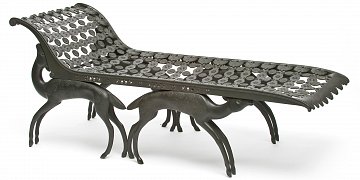 Parmi les créations les plus emblématiques de Rateau, on trouve l’aménagement de l’hôtel particulier de Jeanne Lanvin a Paris, où il conjugue le bronze doré avec des motifs naturalistes et exotiques. Son utilisation de matériaux luxueux comme le bronze, l’ivoire et les bois rares était avant-gardiste. Sa ‘Chaise Dauphin’, est une autre pièce majeure, où la structure en bronze et le dossier en forme de dauphin illustrent son penchant pour l’Antiquité et le monde naturel. Ces œuvres sont souvent exposées dans des collections prestigieuses telles que le Metropolitan Museum of Art à New York.