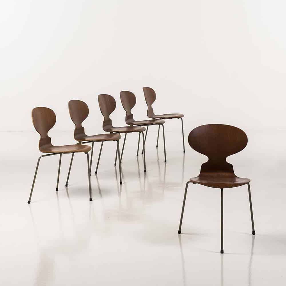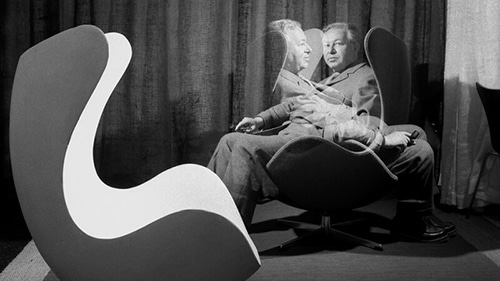 En ce sens, Jacobsen commence à produire des projets répondant à l’idée d’un design total, présent dans la vie de tous les jours. Ses projets de l’époque, comme l’établissement Bellavista à Klampenborg ou encore un complexe résidentiel sur la plage de l’Öresund qu’il achève en 1935, témoignent de ces diverses influences, puisque Jacobsen y conçoit tout, de l’armature du bâtiment jusqu’au mobilier des chambres et des employés ! Mais Jacobsen est aussi influencé par l’architecte Ludwig Mies Van Der Rohe, qui développe son célèbre « Less is more ». Les objets qu’il conçoit se vident en effet peu à peu de tout ornement, de toute grandiloquence, pour présenter des lignes simples, éthérées et un ensemble plus fonctionnel que véritablement décoratif. Ainsi en est-il de la chaise rie 7 qu’il élabore en 1955 et qui se trouve être aujourd’hui la chaise danoise la plus vendue au monde !