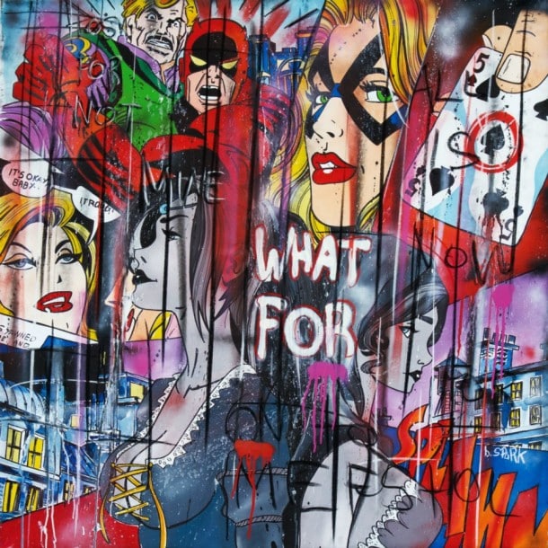 Spark est souvent associé au « street pop », un mouvement qui combine l’esthétique du pop art américain avec les influences du street art européen. Ce courant se caractérise par une utilisation audacieuse des couleurs et des thèmes contemporains issus de la culture de masse.