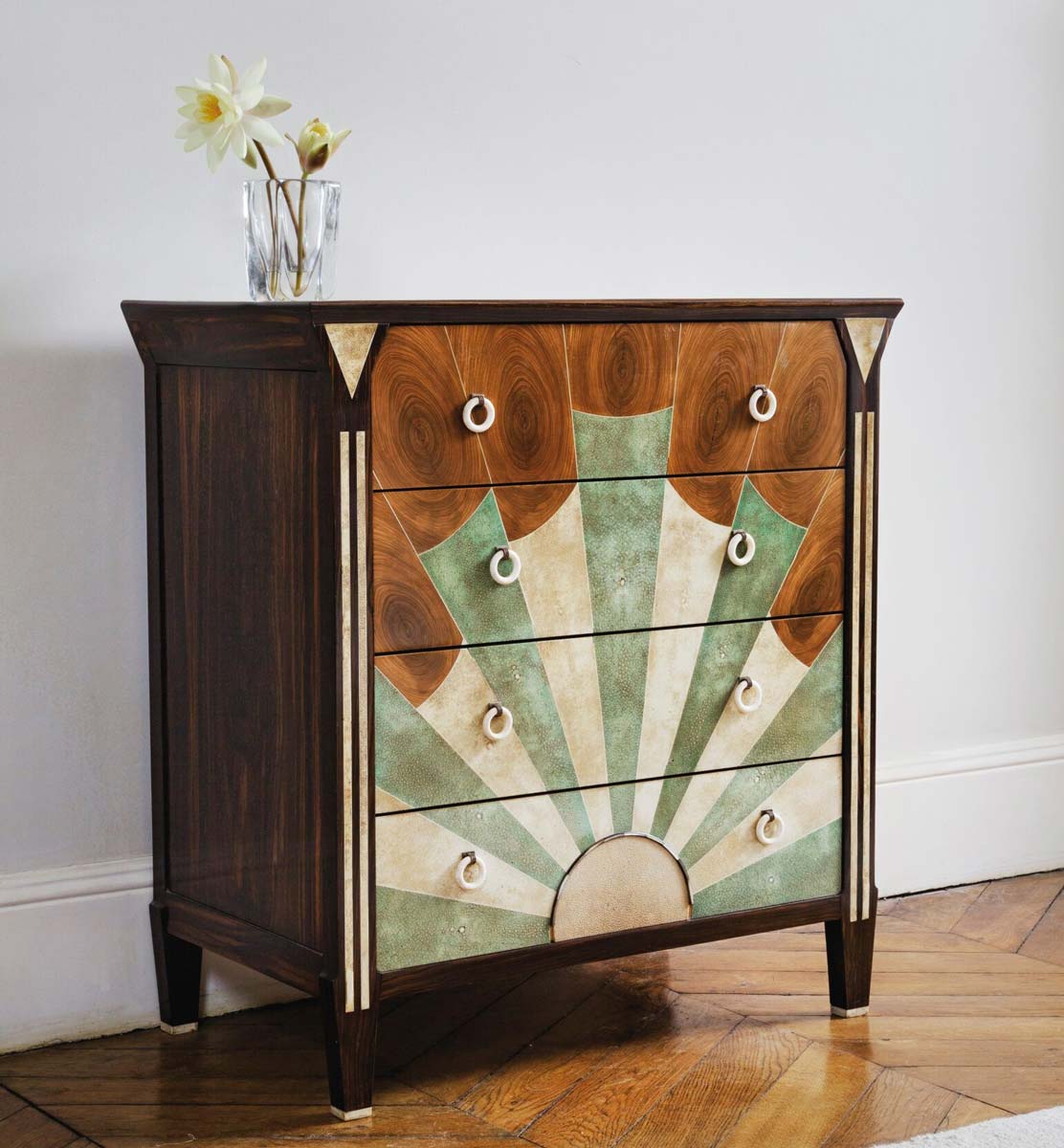 Clément Rousseau est un artiste et décorateur français réputé pour ses créations d'inspiration Art déco, mêlant matériaux luxueux tels que l'ivoire et l'ébène.
