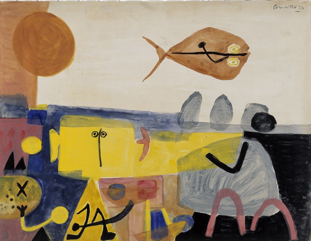 En 1948, Corneille fut l’un des artistes fondateurs du mouvement Cobra, aux côtés d’autres artistes tels que Karel Appel, Asger Jorn et Constant Nieuwenhuys. Cobra était un mouvement expérimental et avant-gardiste qui a émergé après la Seconde Guerre mondiale. Il prônait un art spontané, primitif et libéré des contraintes académiques. Le groupe cherchait à créer un nouvel art, révolutionnaire et en rupture avec les conventions de l’époque.