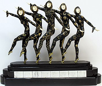 Quelques-unes de ses œuvres les plus célèbres incluent « Les Girls », « Danseuse au cerceau », et « Thais ». Ces sculptures combinent souvent le bronze et l’ivoire, utilisant des techniques de patine complexes et des socles en marbre ou en onyx. Les thèmes récurrents sont les danseuses et les figures féminines élégantes, souvent inspirées par la mythologie et le théâtre.