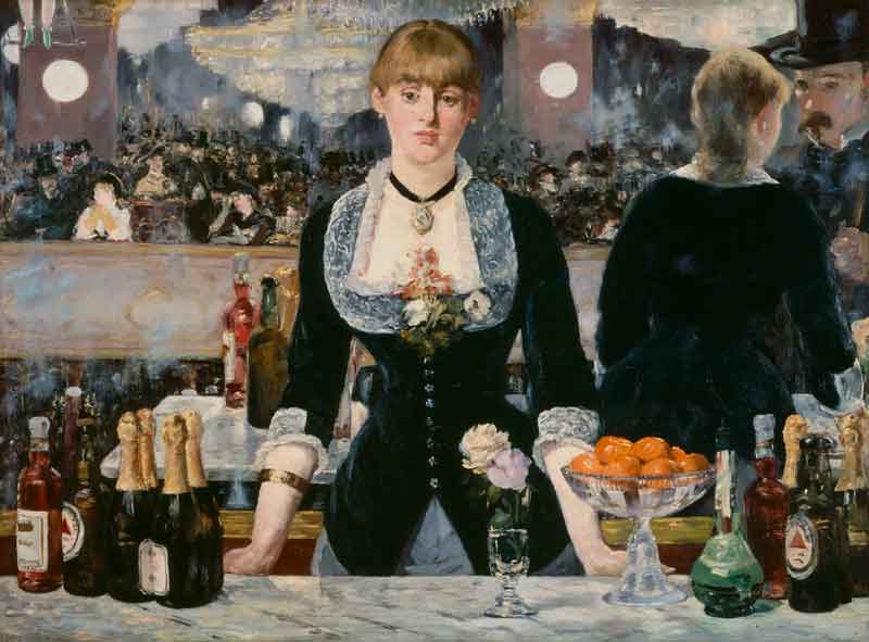 Parmi les toiles les plus emblématiques de Manet, « Le Déjeuner sur l’herbe » (1863) et « Olympia » (1863) provoquent des scandales mais marquent une rupture avec l’art académique. Ces œuvres, conservées au Musée d’Orsay, illustrent sa capacité à combiner des éléments classiques et des sujets modernes, utilisant des techniques comme le clair-obscur et un cadrage audacieux. « Un bar aux Folies Bergère » (1882), son dernier grand tableau, reflète la vie parisienne avec une perspective innovante et une maîtrise impressionnante de la lumière.