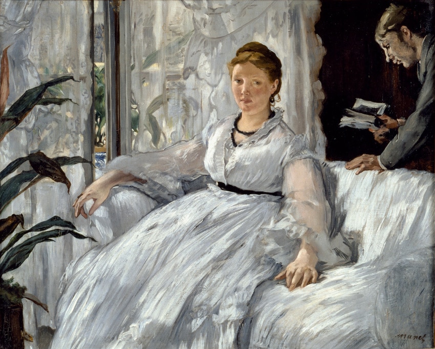 Edouard Manet, né le 23 janvier 1832 à Paris, est un peintre français reconnu comme étant l’un des initiateurs du mouvement impressionniste, bien qu’il ait toujours gardé une distance avec ce dernier. Issu d’une famille bourgeoise, Manet opte pour la peinture contre l’avis de son père qui voulait le voir devenir juriste. Après avoir échoué au concours d’entrée à la Marine, il s’inscrit en 1850 dans l’atelier du peintre Thomas Couture, où il reste jusqu’en 1856. Durant sa formation, il s’inspire des voyages en Italie et en Allemagne, et développe un intérêt pour les maîtres anciens et contemporains. Manet se lie d’amitié avec de nombreux artistes de son époque, dont Monet, Renoir et Pissarro, influence mutuelle enrichissante pour tous.