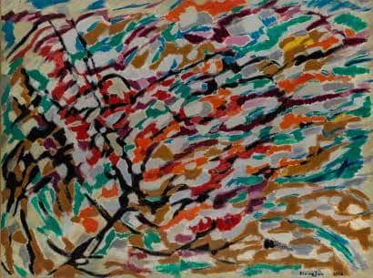 Elvire Jan, née en 1904 et décédée en 1996, est une figure incontournable de l'abstraction en France, bien que son nom reste méconnu du grand public. Ses compositions abstraites, caractérisées par une approche lyrique et structurée, en font une artiste influente dans le développement de l'art non figuratif au XXe siècle.