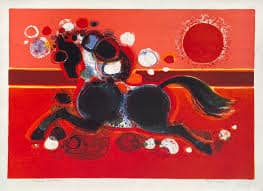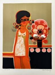 Parmi ses œuvres les plus emblématiques, on retrouve ** »Les Amoureux de Paris »**, une toile vibrante où se mêlent paysages urbains et personnages poétiques. ** »Carnaval Vénitien »**, quant à elle, illustre son goût pour les couleurs et son inspiration festive, avec des masques et des costumes stylisés. Ses lithographies, riches en détails et en textures, sont également très prisées, notamment celles conçues pour des portfolios d’édition artistique. Certaines pièces sont conservées dans des collections privées ainsi que dans des institutions prestigieuses en France et à l’étranger.
