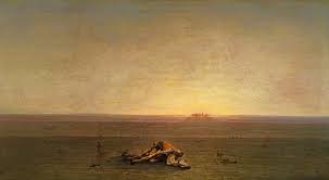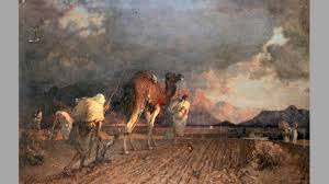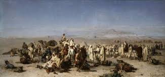 Parmi les œuvres emblématiques de Gustave Guillaumet, « Le Sahara » (1867) se démarque particulièrement. Cette toile, conservée au Musée d’Orsay à Paris, illustre l’immensité et la solitude des déserts algériens avec un mélange de détails réalistes et d’émotions poignantes. Un autre chef-d’œuvre est « L’Aguade », exposée au Musée des Beaux-Arts de La Rochelle, qui représente des femmes portant de l’eau sous un soleil écrasant : un hommage vibrant à la beauté et à la résilience des habitants d’Afrique du Nord. D’autres œuvres telles que « La Halte », qui dépeint des caravanes dans le désert, restent des références de son exploration de la vie quotidienne en Algérie. Ses toiles, réalisées avec minutie, combinent huile sur toile et une attention scrupuleuse aux textures et aux couleurs naturelles.