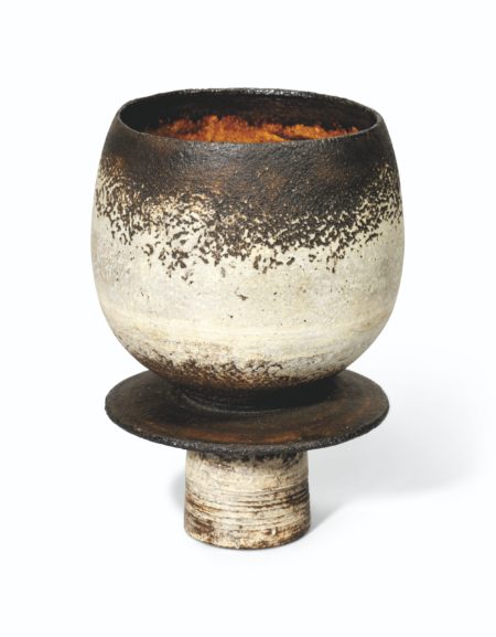 Hans Coper, né en Allemagne en 1920, émigre en Grande-Bretagne pour échapper aux persécutions nazies en 1939. Sans formation artistique formelle au départ, Coper commence à travailler en tant que potier après la Seconde Guerre Mondiale, marqué notamment par sa collaboration initiale avec Lucie Rie, une autre émigrée autrichienne. Ensemble, ils poussèrent les frontières de la céramique d’art. Coper développa rapidement son propre langage visuel, explorant la forme et la texture dans ses œuvres, tout en s’établissant comme une figure incontournable dans l’histoire de la poterie moderne.