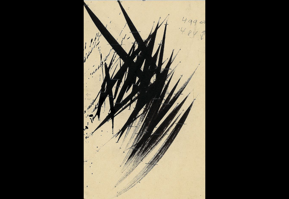Les années 1960 amorcent un changement radical dans le travail de Hartung. Plongé dans l’idée moderne de reproductibilité, Hans Hartung use désormais de matériaux et d’outils peu communs, troquant la peinture à l’huile contre la peinture industrielle et ses pinceaux contre des balais- brosse ou des serpettes. Puis les outils sont de trop et il leur préfère les sprays et les pistolets de carrossier. Lui qui, auparavant, était au plus près de son œuvre par souci impérieux de minutie, le voilà désormais éloigné d’elle ; le recul du peintre devient un pré-requis à sa production. La rigueur mathématique cède la place à l’action painting. Hartung ne se contente pas de jeter la peinture mais griffe, gratte ou lacère la toile. Tout au long des années 1960, ses œuvres sont régulièrement exposées en Europe et en Amérique du Nord puis Hartung dessine et fait construire une villa et des ateliers à Antibes. Il y réside en permanence à partir de 1972, même lorsqu’il est élu à l’Académie des Beaux-Arts en 1977. Jusqu’à sa mort en 1989, Hans Hartung ne cesse d’expérimenter et de produire, usant toujours d’outils bien éloignés des traditionnels pinceaux. Les expositions rétrospectives qui lui sont consacrées s’intéressent autant à son œuvre peinte qu’à sa production sur papier, ses photographies, ses gravures sur bois et ses tapisseries réalisées avec Anna-Eva Bergman.