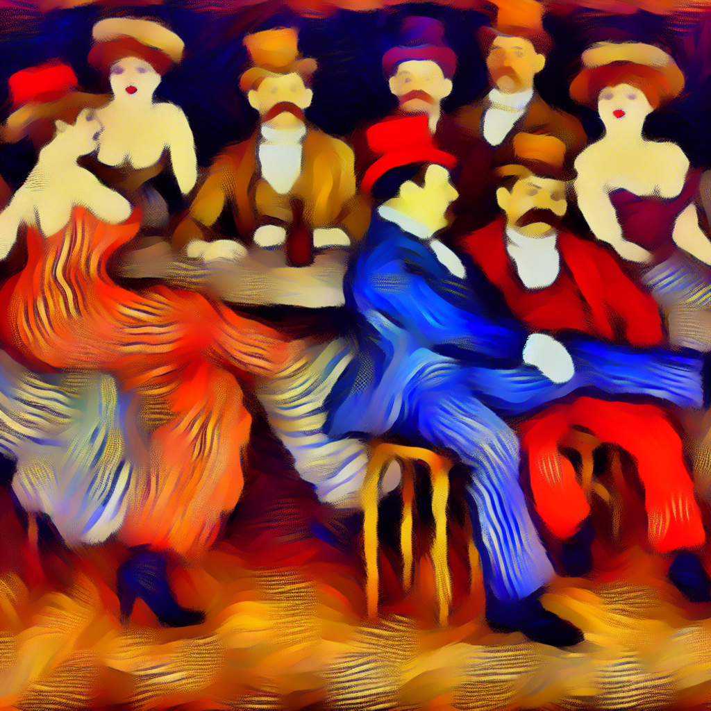 Parmi ses œuvres les plus célèbres figurent « At the Moulin Rouge » et « La Goulue arrivant au Moulin Rouge », des peintures qui dépeignent avec vivacité et couleur les scènes de la vie nocturne parisienne. Ses techniques incluent l’utilisation des couleurs vives, des contours simplifiés et des perspectives souvent innovantes, capturant le mouvement et l’énergie de ses sujets. Ses œuvres sont majoritairement conservées au Musée Toulouse-Lautrec à Albi et d’autres institutions prestigieuses à travers le monde.