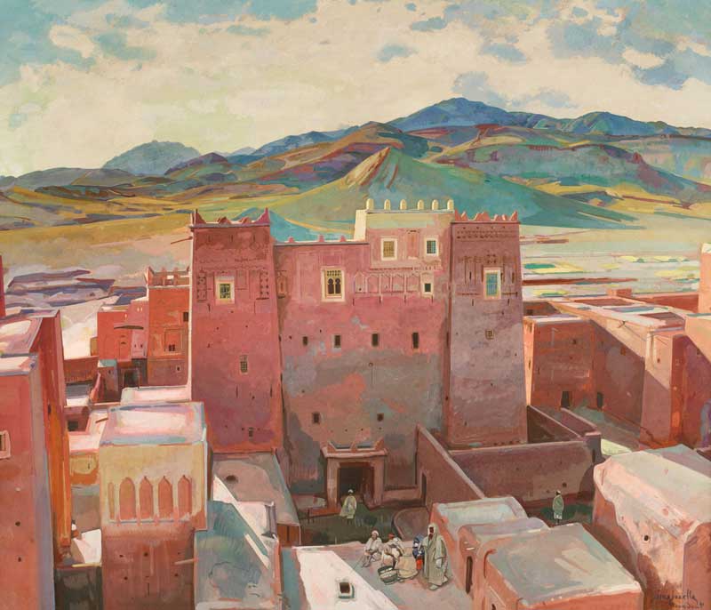 Parmi les œuvres les plus emblématiques de Jacques Majorelle, on trouve « Les kasbahs d’Ouarzazate », réalisée vers 1930, où il utilise des huiles pour saisir la robustesse des fortifications en terre rouge du Maroc. Son art se caractérise par une utilisation vibrante des couleurs, dont le bleu Majorelle est le plus célèbre, une teinte qu’il a développée et utilisée intensivement dans son jardin à Marrakech. Ce jardin, dorénavant un musée ouvert au public, abrite plusieurs de ses œuvres majeures.