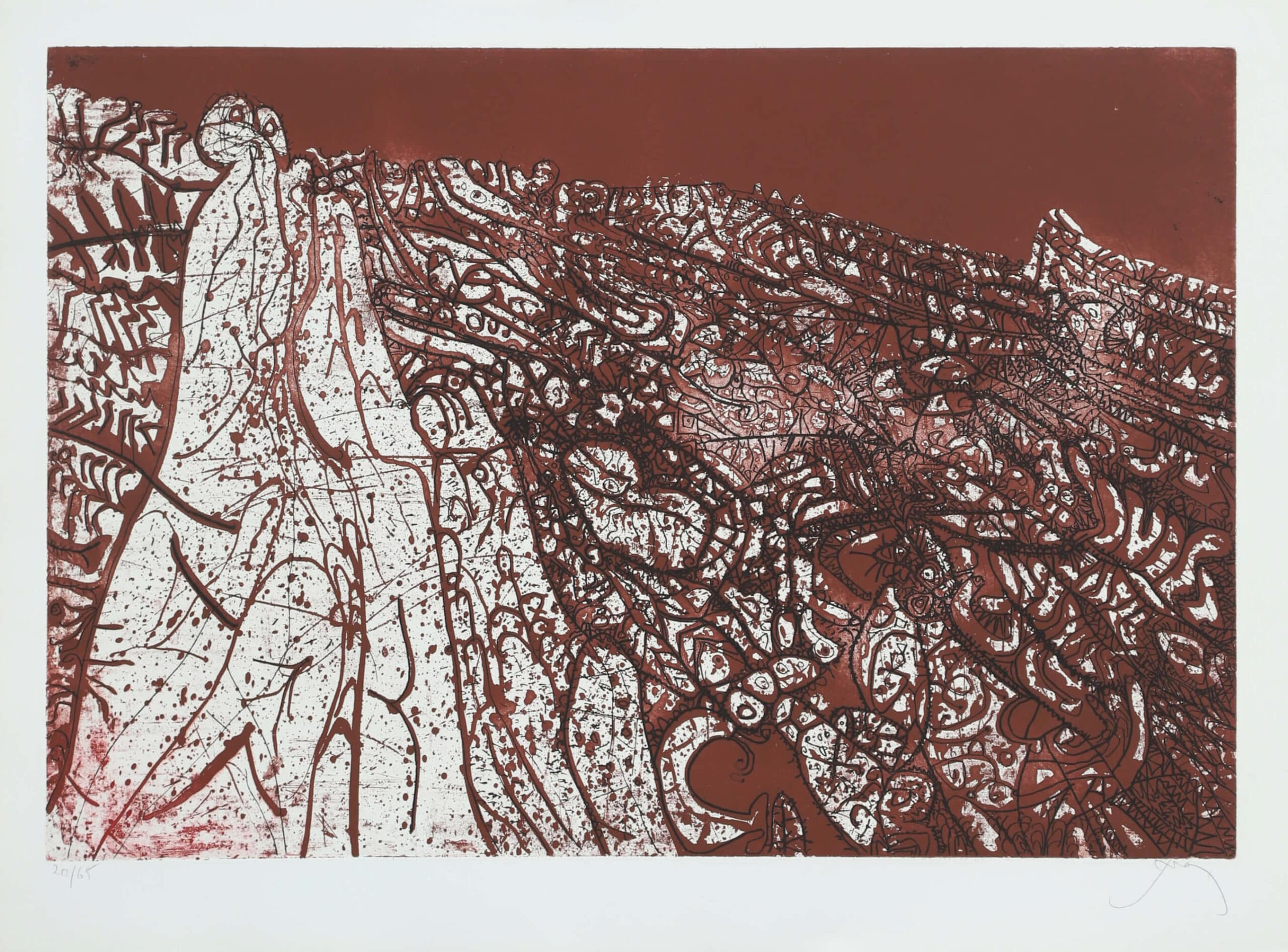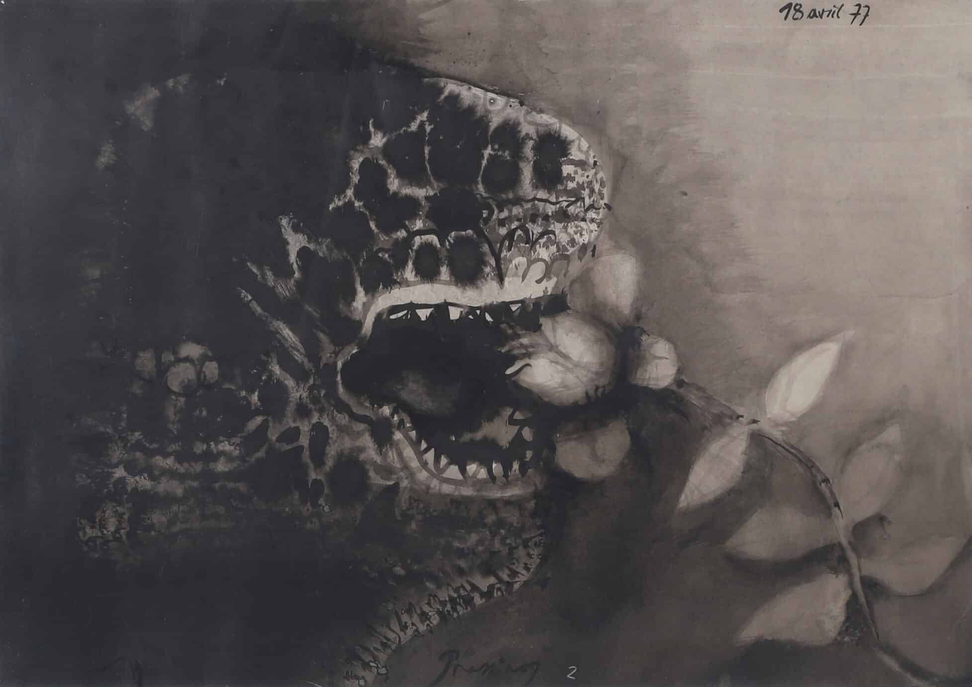En 1940, Mario Prassinos s’engage dans l’armée avant d’être démobilisé suite à une grave blessure sur le champ de bataille, qui lui vaudra de recevoir la Croix de guerre. Bien que blessé, Mario Prassinos n’en reste pas pour autant inactif, puisqu’il rejoint la Résistance. A la même époque, Prassinos fait la connaissance d’Albert Camus et de Raymond Queneau. Au sortir de la guerre, il travaille pour la maison d’édition Gallimard et réalise des illustrations, alliant avec plaisir sa passion pour les arts graphiques et la littérature. Il se fait connaître à l’international grâce à ses toiles et à ses dessins à l’encre de Chine. Dégageant une grande force et une grande précision du trait, ses compositions oscillent entre abstraction et figuration, en témoigne sa série des Alpilles où il est possible de reconnaître le tracé des montagnes, pris entre des filets d’encre déposés énergiquement sur le support.