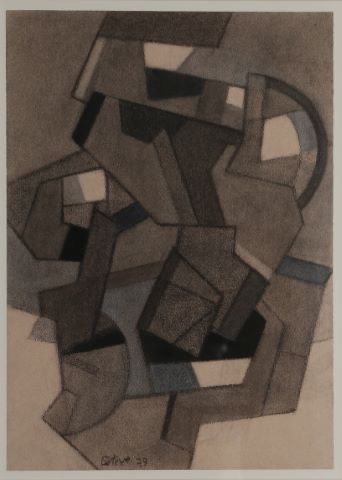 En 1930, Maurice Estève fait l’objet de sa première exposition personnelle à la galerie parisienne Yvangot, où il se fait remarquer par le critique d’art Maurice Raynal. Les toiles qu’il y dévoile se détachent déjà d’une représentation mimétique et marquent une appropriation singulière des théories du cubisme avec des formes encore reconnaissables, empruntant leurs contours à la couleur, aux formes géométriques et aux arabesques. Bien qu’il se soit fait remarquer par Raynal, éminente figure de la scène artistique française, Maurice Estève peine encore à se faire connaître et à construire sa réputation. A la fin des années 1930, il pense sérieusement à changer de voie et notamment à se tourner vers la mise en scène et le cinéma. Ainsi en 1937, à l’occasion de l’Exposition Internationale, Estève est chargé de décorer les pavillons de l’Air et des Chemins de Fer, en collaboration avec Sonia et Robert Delaunay.