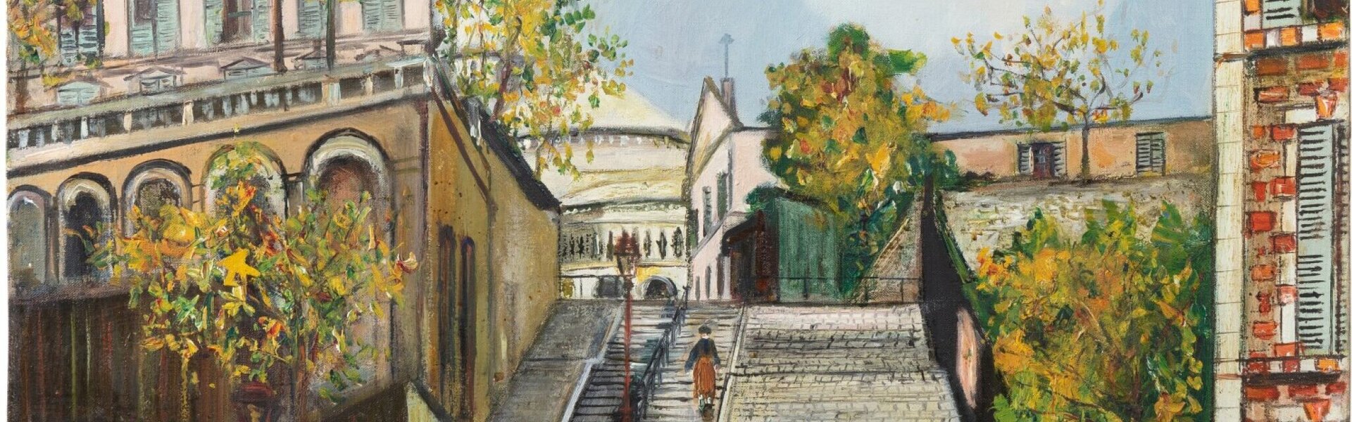 Bien que Maurice Utrillo ne se soit jamais revendiqué d’un courant artistique spécifique, son travail est souvent associé au Postimpressionnisme et à l’École de Paris. L’École de Paris n’est pas un mouvement à proprement parler mais désigne un groupe d’artistes cosmopolites actifs à Montmartre et Montparnasse au début du XXe siècle.