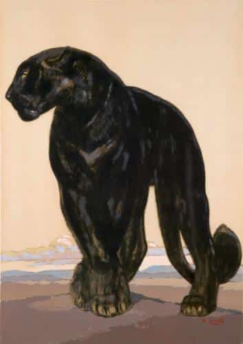 Parmi ses œuvres les plus célèbres, on compte « La Panthère Noire » (1929), une composition emblématique de l’Art déco, et ses illustrations pour « Le Livre de la Jungle » de Rudyard Kipling (1919). Jouve utilisait des matériaux variés, notamment le bronze, la faïence et les techniques de gravure pour capturer la majesté des animaux.