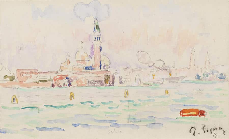 Si ses pièces de jeunesse trahissent clairement une influence impressionniste, intégrant déjà des considérations plastiques motivées par la fugacité et la transparence de la lumière, Signac s’en détache très vite pour développer un propre style propre et singulier. Dans sa volonté de pousser plus loin encore les expérimentations optiques initiées par les impressionnistes, Signac trouve en Georges Seurat un véritable alter ego. Ensemble, ils posent les bases du néo-impressionnisme avec pour particularité d’y associer les lois scientifiques du chimiste Chevreul. Pour ce dernier, une couleur n’existe pas en soi de manière absolue mais se définit par rapport aux autres couleurs qui l’entourent. Autrement dit, la définition exacte de ce que vont chercher à transcrire Signac et Seurat dans leurs toiles ! En composant des tableaux aux couleurs détachées les unes des autres, les deux artistes poussent le spectateur à opérer de lui-même la synthèse globale de la toile. Après la mort prématurée de Seurat, Paul Signac continue à approfondir ses recherches et théorise leurs avancées, publiant ainsi La Peinture d’Eugène Delacroix au néo-impressionnisme en 1889, traité dans lequel il retrace l’histoire de la peinture au XIXe siècle et présente sa technique pointilliste comme l’aboutissement de toutes les avancées esthétiques de leur temps.