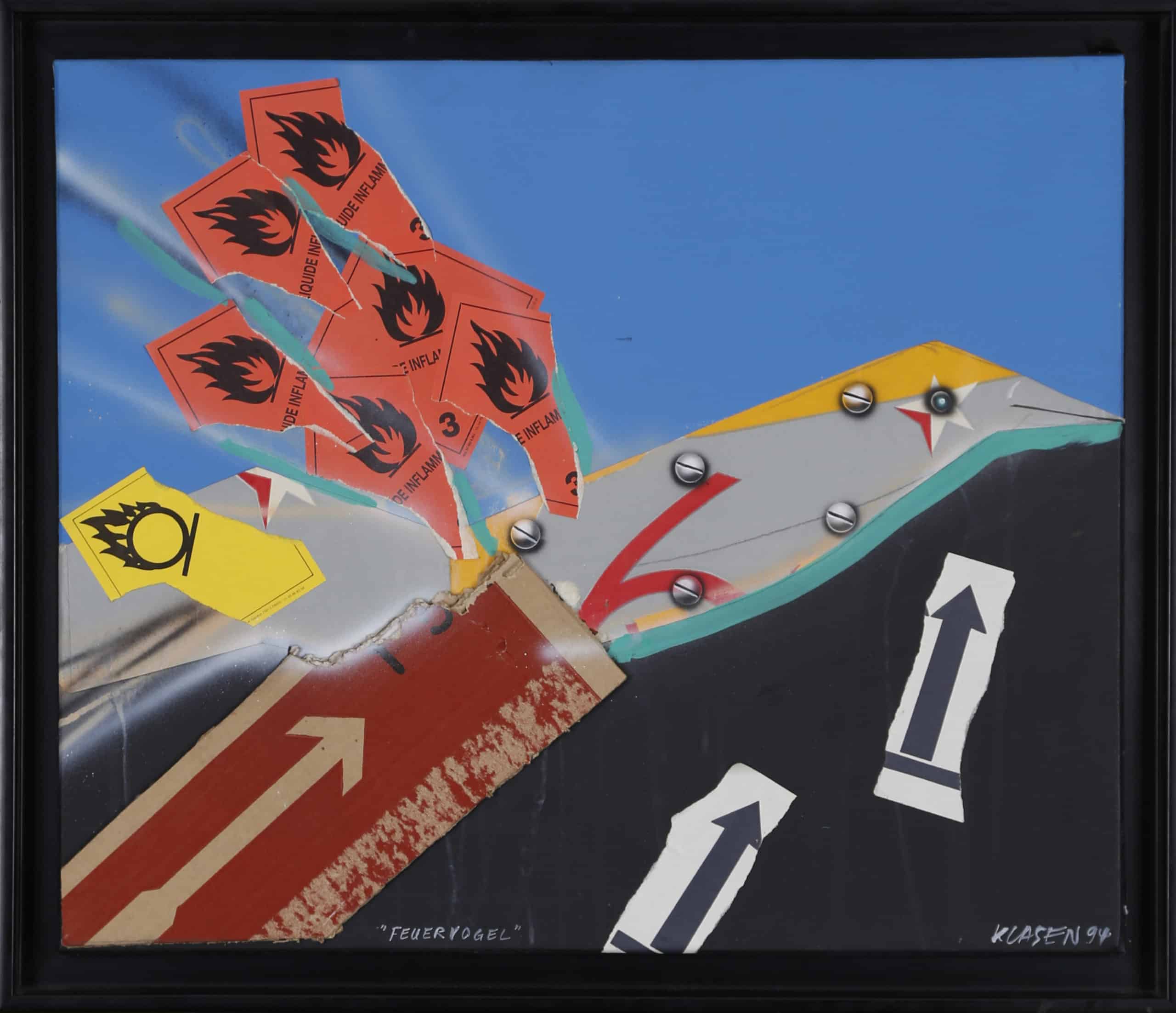 Considéré alors comme l’un des pionniers de la Figuration narrative théorisé par le critique d’art Gassiot-Talabot en 1965, Klasen se retrouve parfaitement dans ce mouvement qui critique la société de consommation et qu’on appelle parfois le « Pop Art français ». En 1978, il rencontre Claudine d’Hellemmes, sa première épouse. A partir des années 1980, Klasen développe le thème de l’enfermement avec des toiles, souvent réalisées à partir de collages, figurent en gros plan et sur des fonds neutres des verrous, des barrières, des serrures… Klasen connaît alors une reconnaissance internationale, en particulier après avoir dévoilé sa série de 100 tableaux sur le Mur de Berlin achevé juste avant la chute du Rideau de Fer. En 1991, une exposition lui est consacrée à Tokyo et, la même année, Klasen réalise une installation avec le cinéaste Samuel Fuller à la FIAC à Paris.