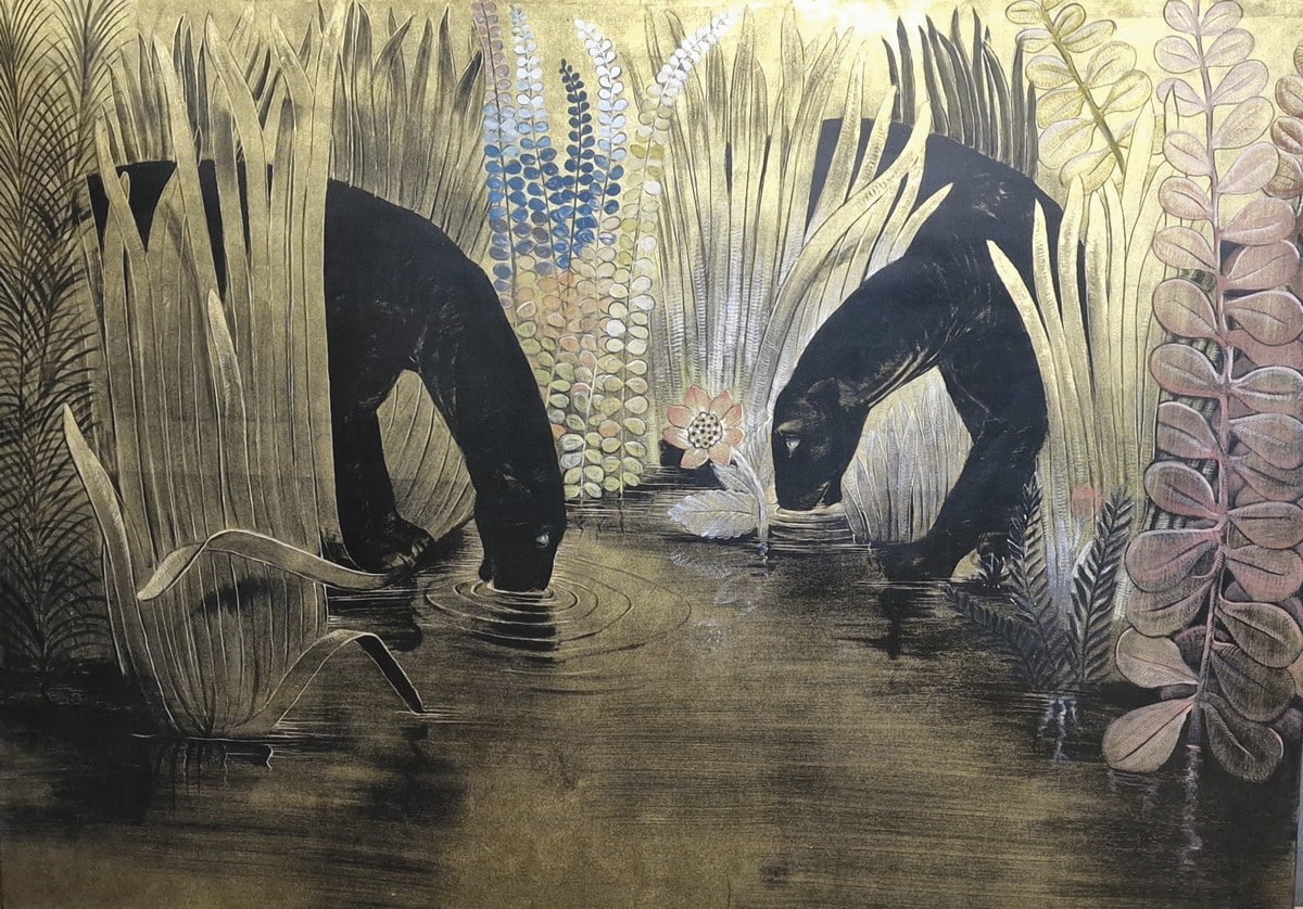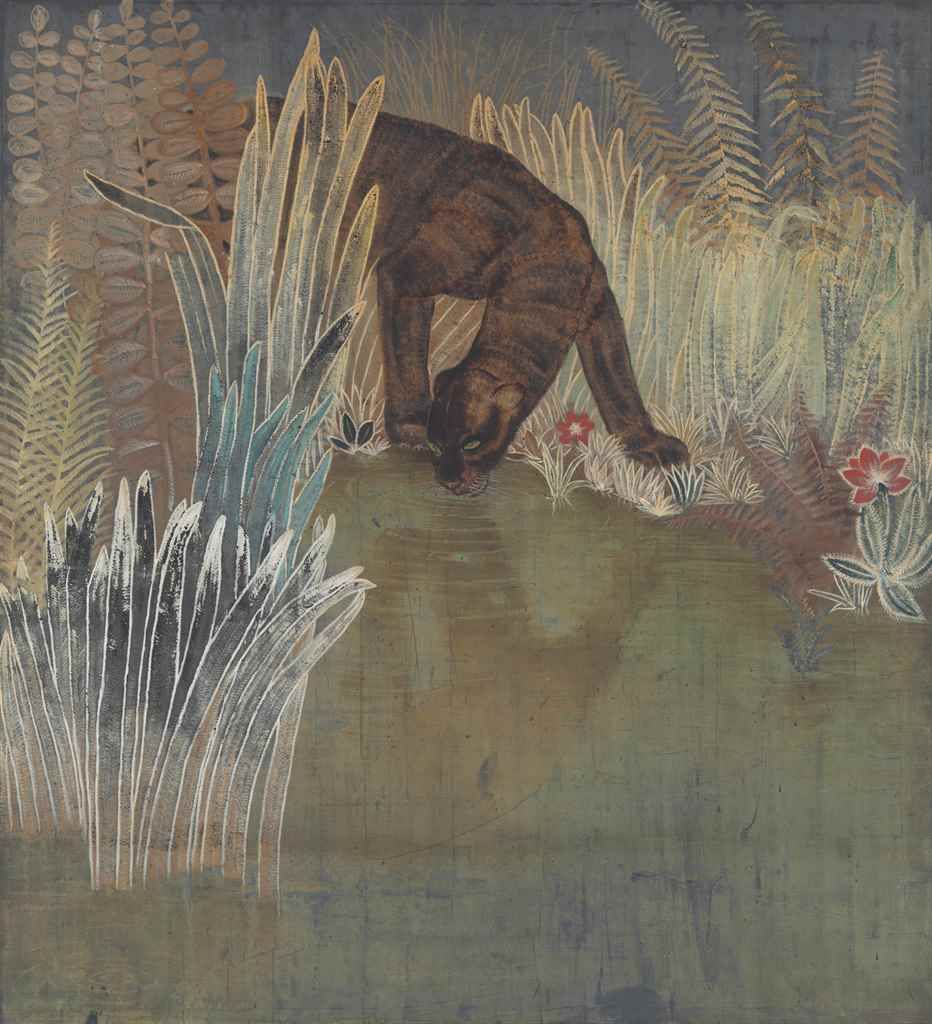 Parmi ses œuvres notables, on trouve des paravents en laque, tels que « Deux figures : l’une nue, l’autre drapée — vol de canards et lotus », qui a été vendu à un prix record chez Sotheby’s. Ses créations en dinanderie et ses laques exotiques, comme les « Panthères noires », sont également très prisées.