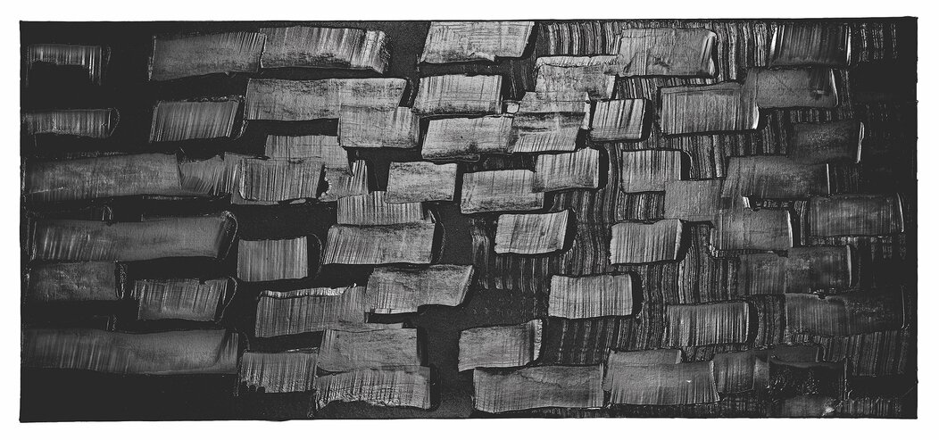 A partir de 1979, Pierre Soulages continue à se renouveler et explore de nouveaux horizons plastiques avec sa série des « Outrenoirs » qui joue des effets de lumière sur des surfaces entièrement recouvertes de pigments noirs. Cette idée révolutionnaire permet à Soulages de structurer un espace pictural qui, bien que n’utilisant qu’une seule couleur, ne ressemble en rien aux monochromes qu’on connaissait jusqu’alors. Dans la lignée des ready-made des années 1910 de Marcel Duchamp, Malevitch avait en effet bousculé l’art moderne en proposant le tout premier monochrome de l’histoire (Carré noir, 1915). Soixante-quatre ans plus tard, l’autodidacte Pierre Soulages renverse la table en surpassant le principe même du monochrome et invite ainsi le regard du spectateur à un voyage non descriptif et poétique dans ses tableaux.