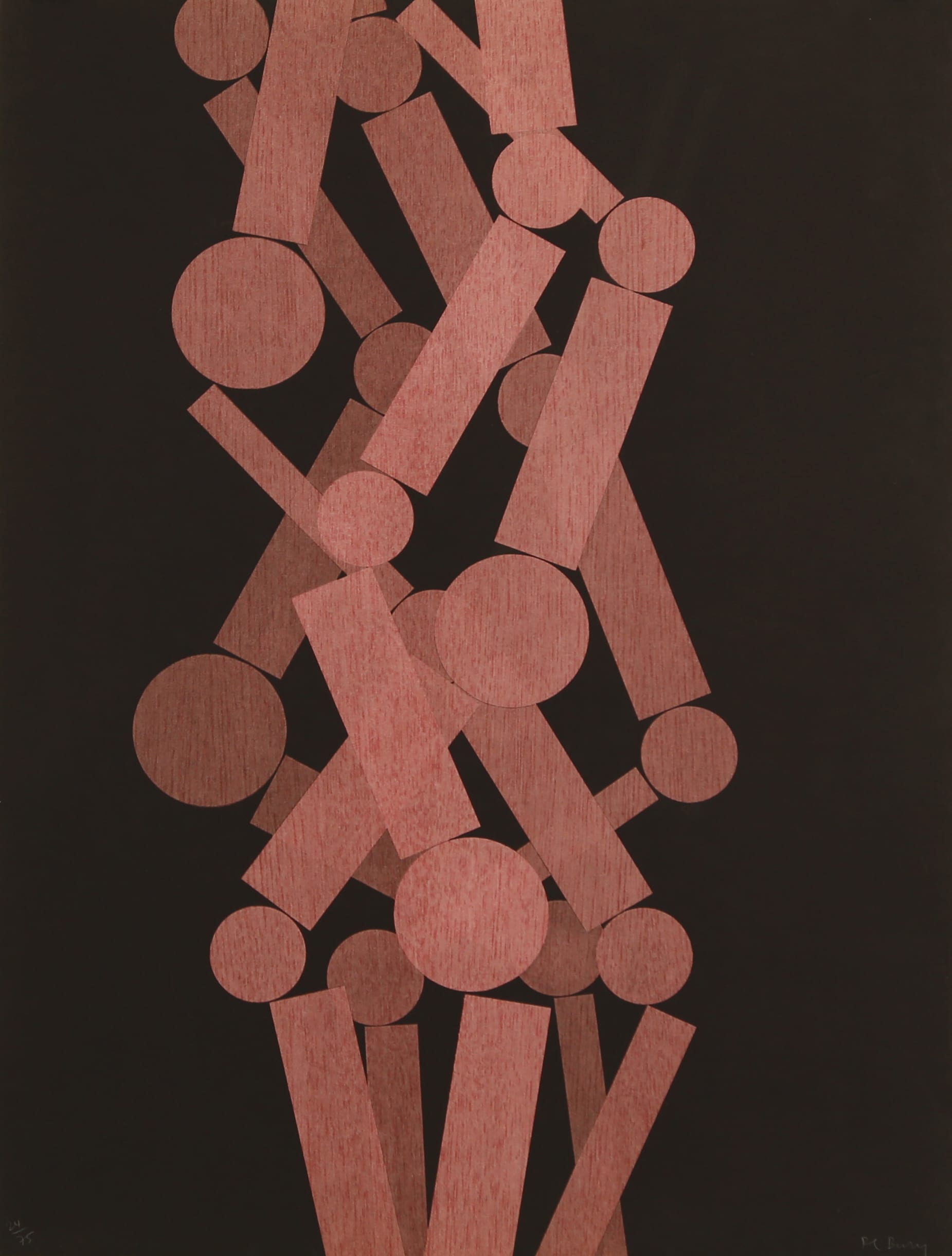 Un autre aspect notable de l’œuvre de Bury était son exploration des combinaisons de formes géométriques et de couleurs vives. Ses compositions étaient souvent abstraites et géométriques, et il jouait avec la répétition de motifs pour créer des œuvres visuellement captivantes.