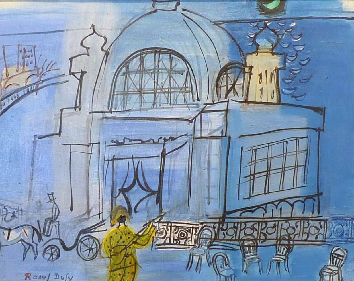 Raoul Dufy est né le 3 juin 1877 à Havre, en France. Il a commencé sa formation artistique à l’École des Beaux-Arts de Paris sous la tutelle de Léon Bonnat. Influencé par les impressionnistes, il découvre le fauvisme en 1905 et adopte rapidement cette palette de couleurs audacieuses. Au fil de sa carrière, il explore également le cubisme avant de développer son propre style caractérisé par des contours noirs et une utilisation exceptionnelle de la couleur bleue. En 1952, il remporte le Grand Prix international de peinture à la Biennale de Venise. Dufy meurt en 1953 en France, laissant derrière lui une riche collection d’œuvres appréciées internationalement.
