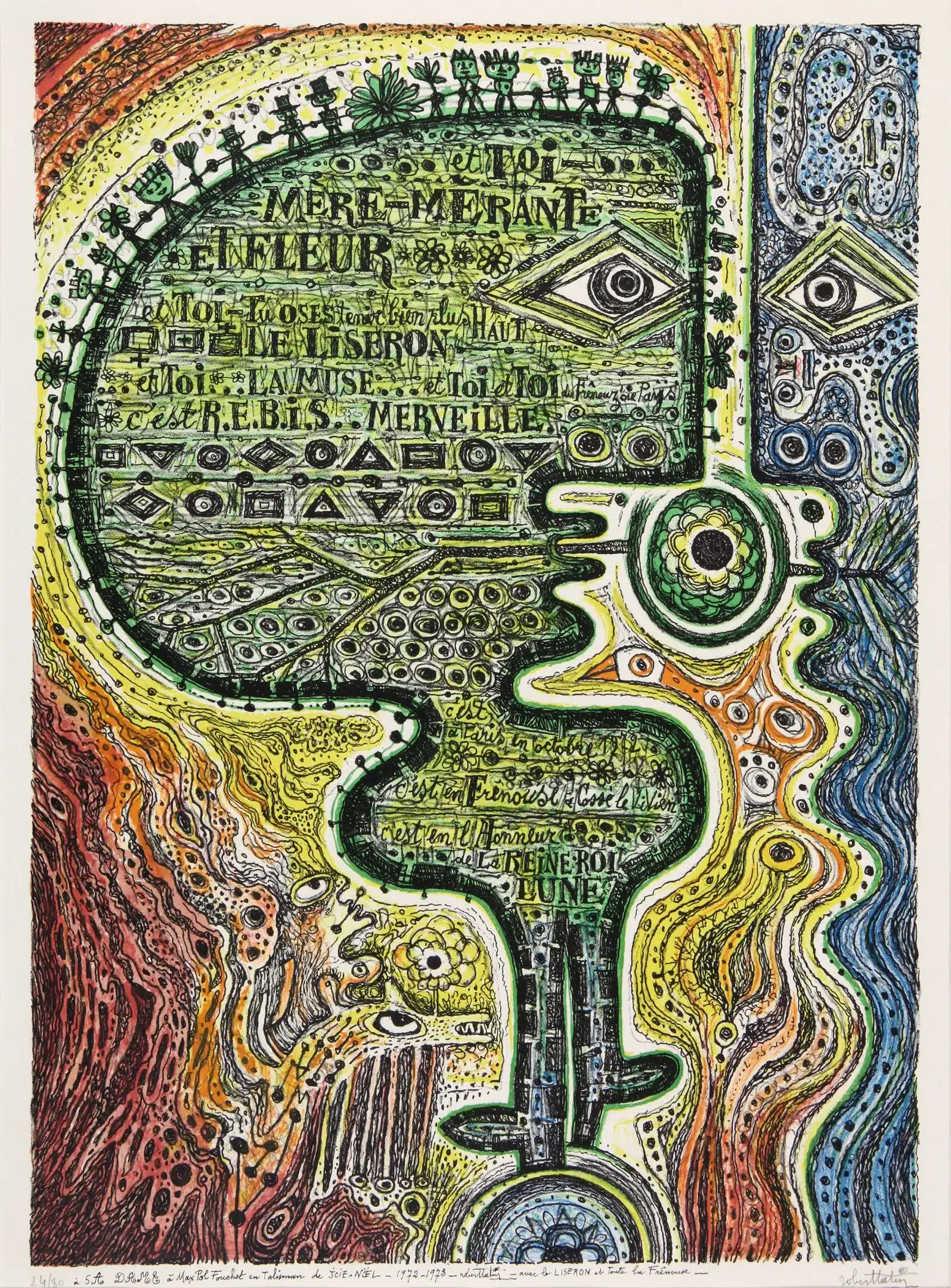 Robert Tatin a commencé sa carrière artistique en tant que peintre, mais il a rapidement élargi ses horizons pour explorer d’autres formes d’expression artistique. Il a travaillé dans divers médiums, y compris la sculpture, la céramique, la peinture murale et la poésie. Son style artistique était éclectique, mélangeant des éléments de surréalisme, de symbolisme et d’art brut.