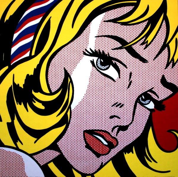 Parmi les œuvres les plus emblématiques de Lichtenstein figurent « Whaam! » (1963) et « Drowning Girl » (1963), qui utilisent des images de BD agrandies, recadrées et remaniées avec un langage dramatique. Ces œuvres sont conservées respectivement à la Tate Modern de Londres et au Museum of Modern Art de New York. Ses toiles sont reconnaissables à leurs points Benday, une méthode employée pour simuler des tons et des dégradés.
