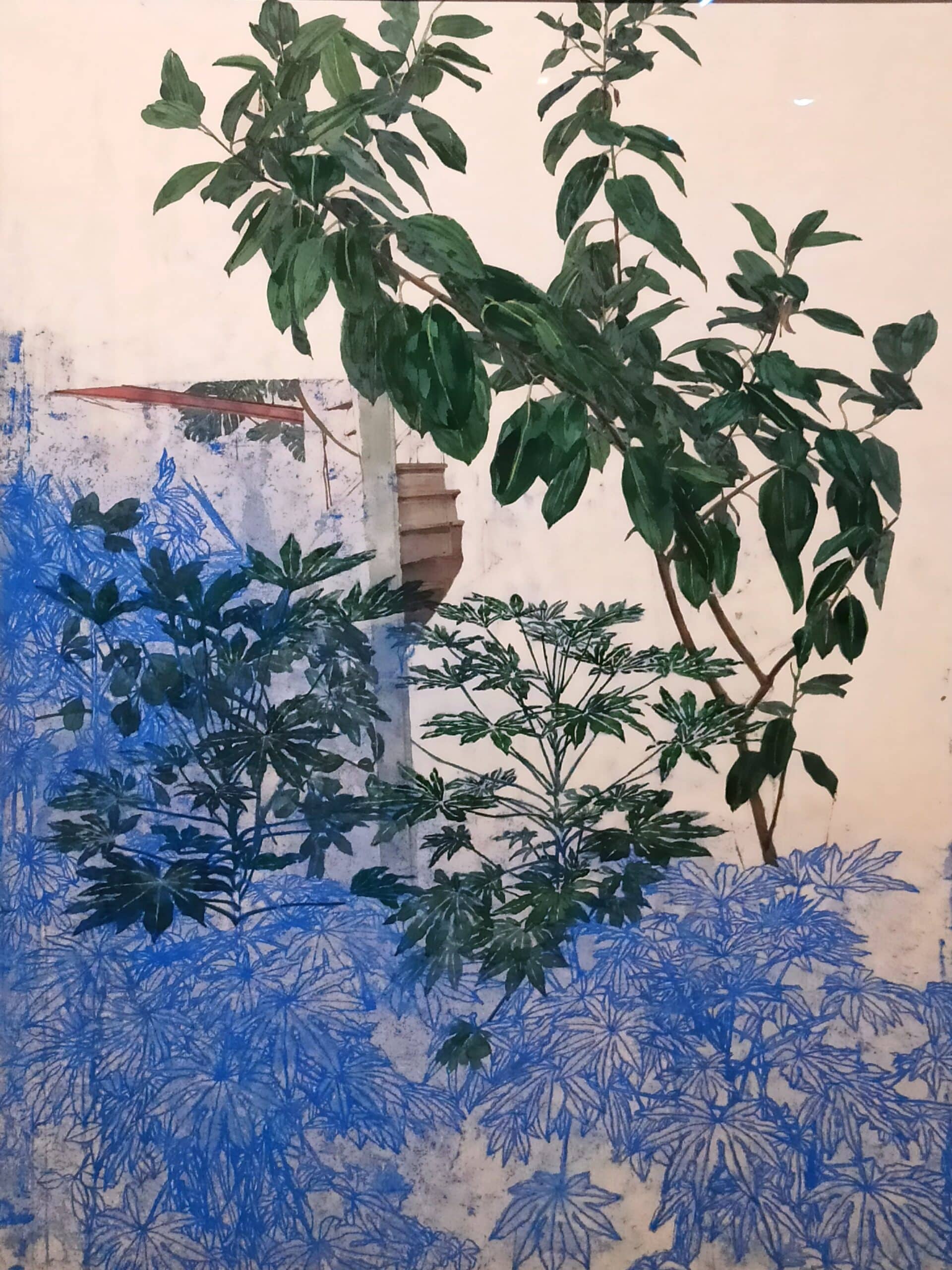 Hanté par les figures architecturales des escaliers et des serres végétales, son travail fascine par la profondeur du motif figuré et par sa sensibilité.