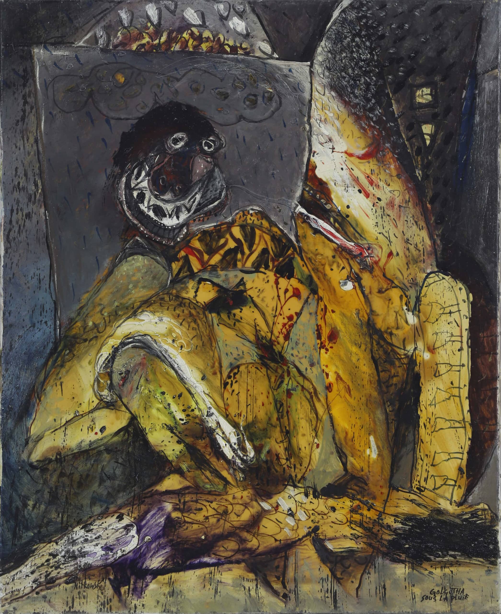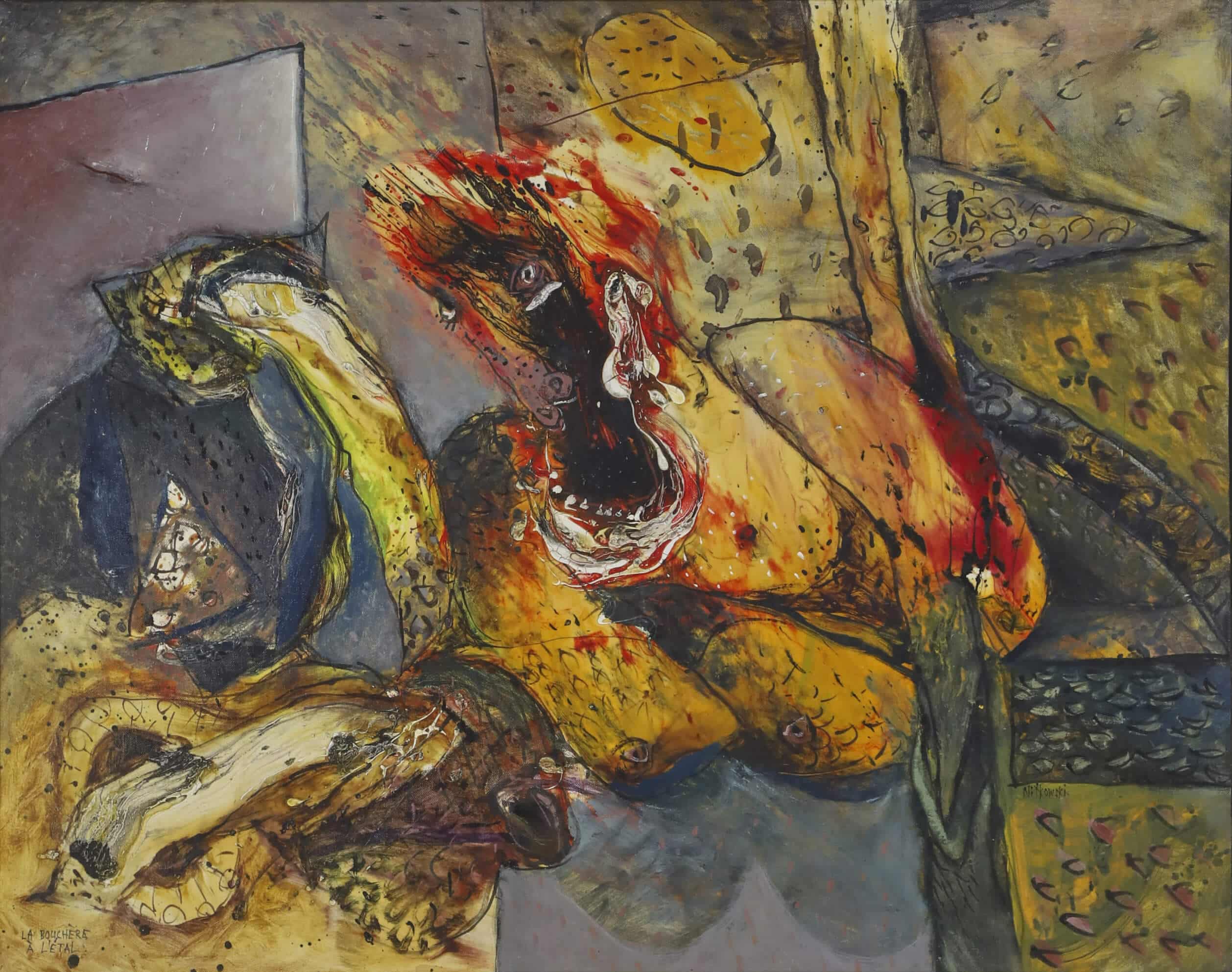 Dès lors, la manière de Nitkowski va évoluer, d’un style abstrait, il passe à des compositions plus expressionnistes, dans lesquelles des figures criantes, tourmentées, torturées s’articulent sur des toiles aux titres évocateurs.