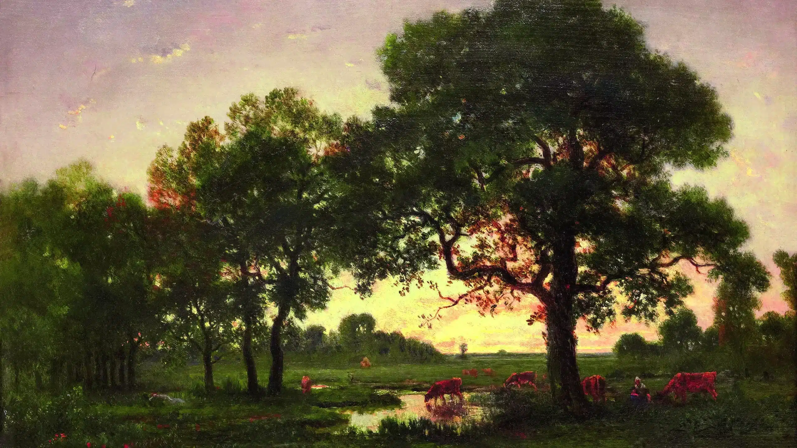 Parmi ses œuvres les plus notable, « Le Coucher de Soleil à la Forêt de Fontainebleau » (1848) est exemplaire, mettant en scène la lumière et l’atmosphère de ce lieu mythique avec une intense émotion. Cette peinture emploie des techniques de superposition de couleurs et de gestion de la lumière qui anticipent les méthodes des impressionnistes. Une autre œuvre majeure, « Le Givre à Louveciennes » (1866), montre sa capacité à capturer la beauté éphémère des effets météorologiques sur le paysage. Ces œuvres peuvent être admirées, entre autres, au Musée d’Orsay à Paris.
