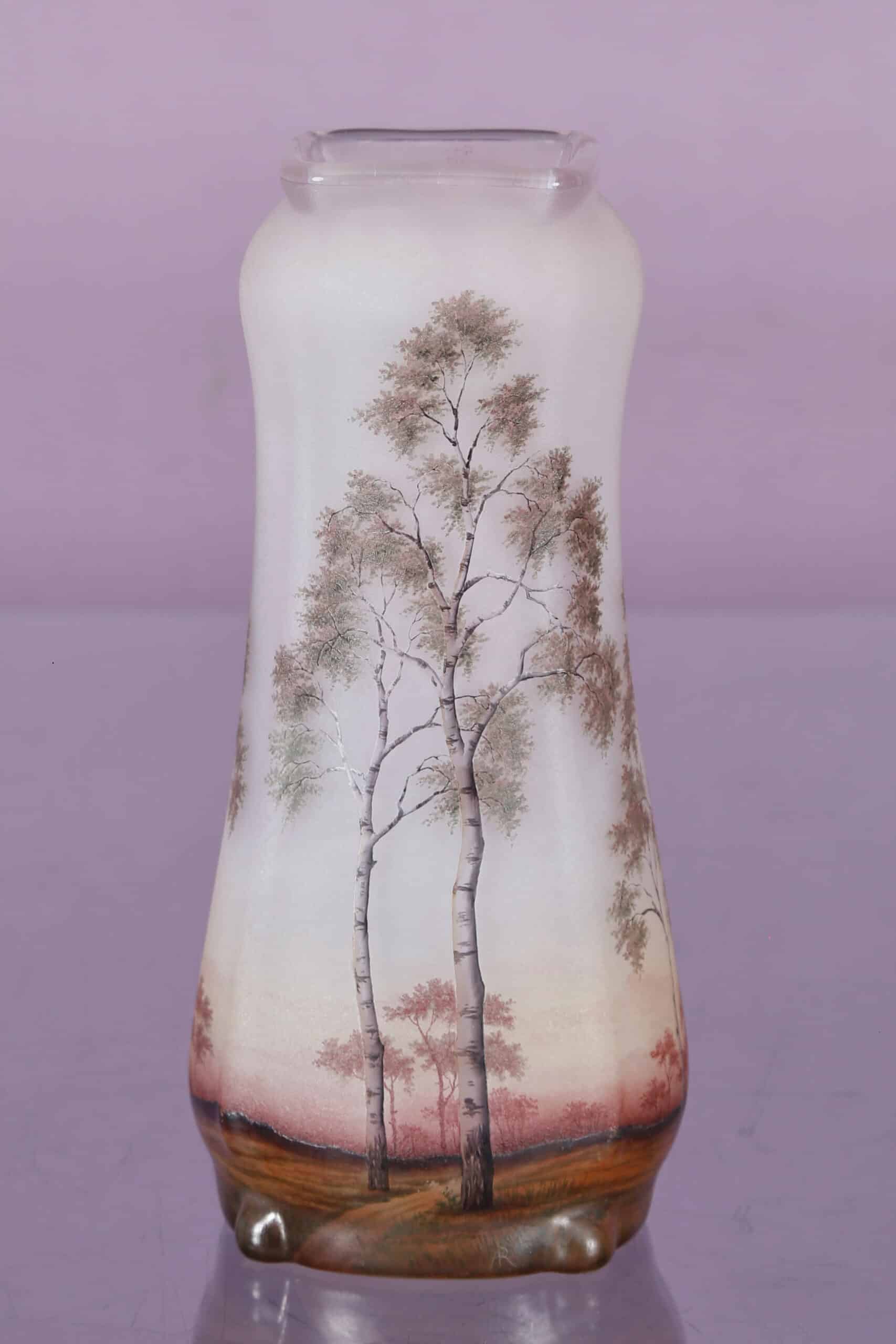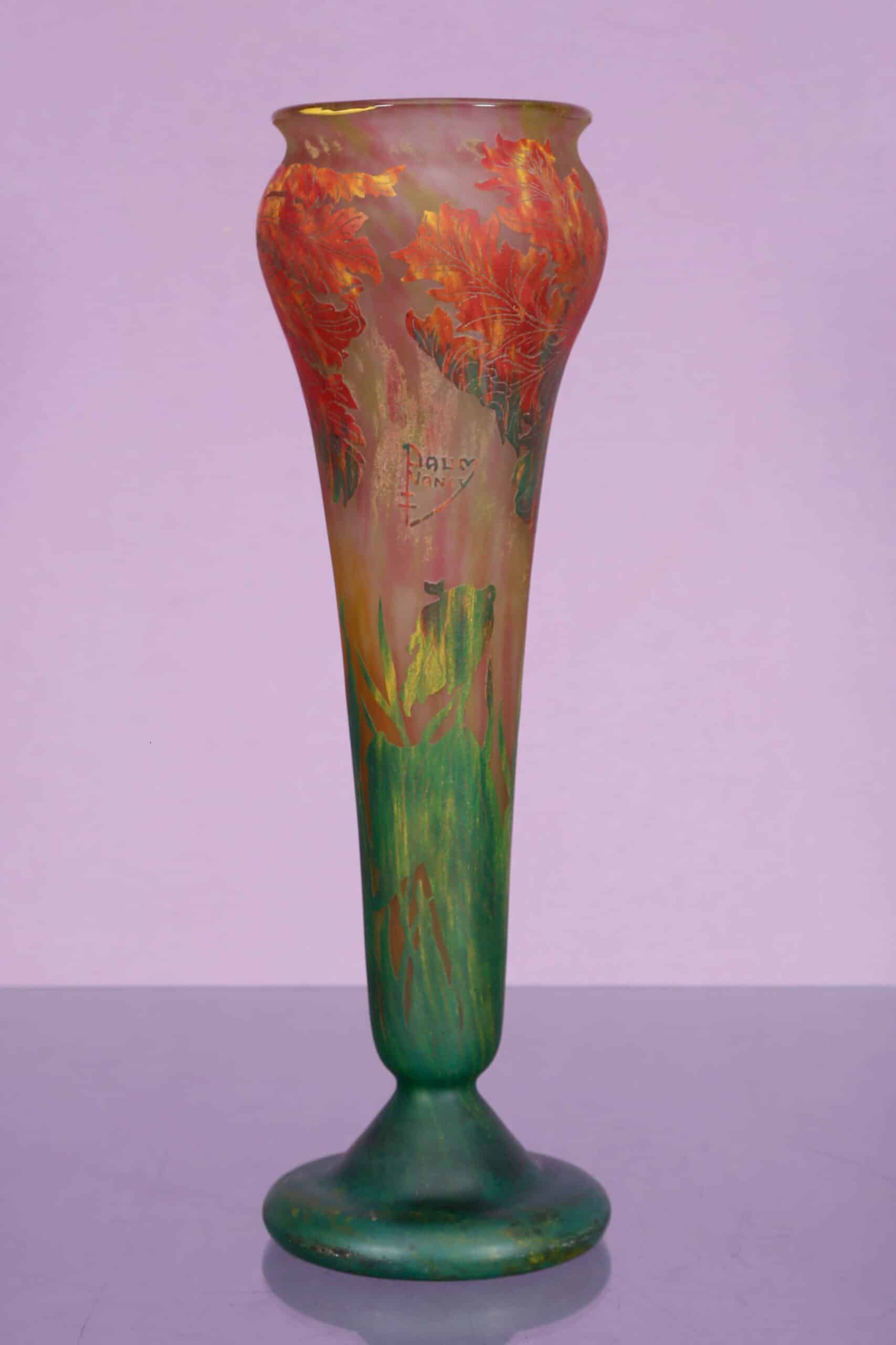 Effectuez des recherches sur des vases Daum Nancy similaires. Consultez des catalogues d’enchères, des galeries d’art en ligne et des experts en art verrier pour obtenir des comparaisons pertinentes.
